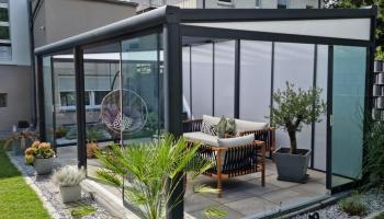 Ticari alanlarda müşterilere hem açık alan hissi hem de korunaklı bir ortam sunmak için kullanılır. Özellikle sigara içme alanı ya da manzaralı oturma köşeleri için uygundur.